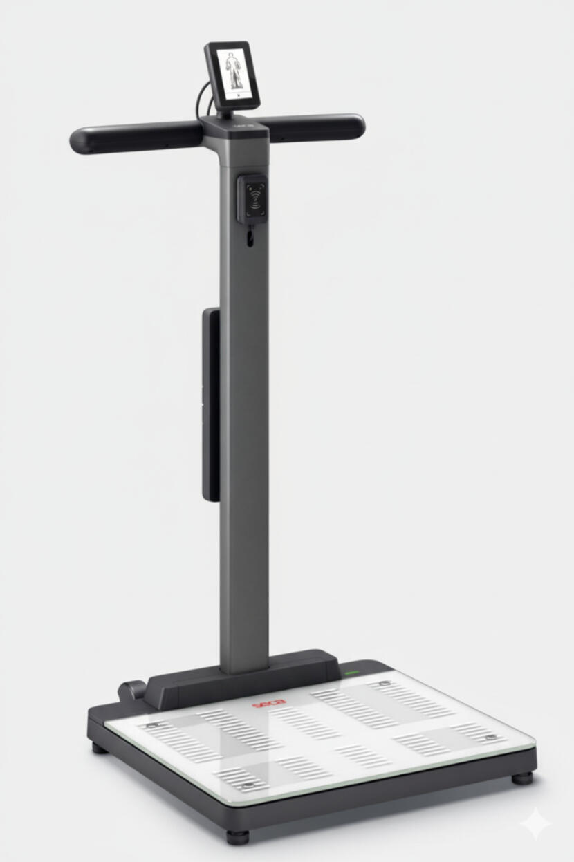 It uses advanced bioelectrical impedance technology (multi-frequency, 8-point contact) to measure fat mass, skeletal muscle mass, visceral fat, hydration, and cellular health — giving you a complete picture of your internal fitness.